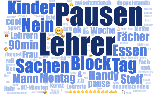 Eine erste Annäherung zur quantitativen Auswertung ist die "Word-Cloud". In einer Word-Cloud richtet sich die Größe der Wörter nach der Anzahl ihrer Nennungen. Das gibt häufig einen guten ersten Eindruck von der Stimmung oder Grundrichtung eines freien Eingabefeldes: